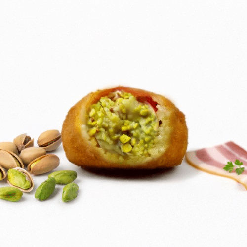mit Pesto Pistazie, Parmesan und Pistazienkerne als topping